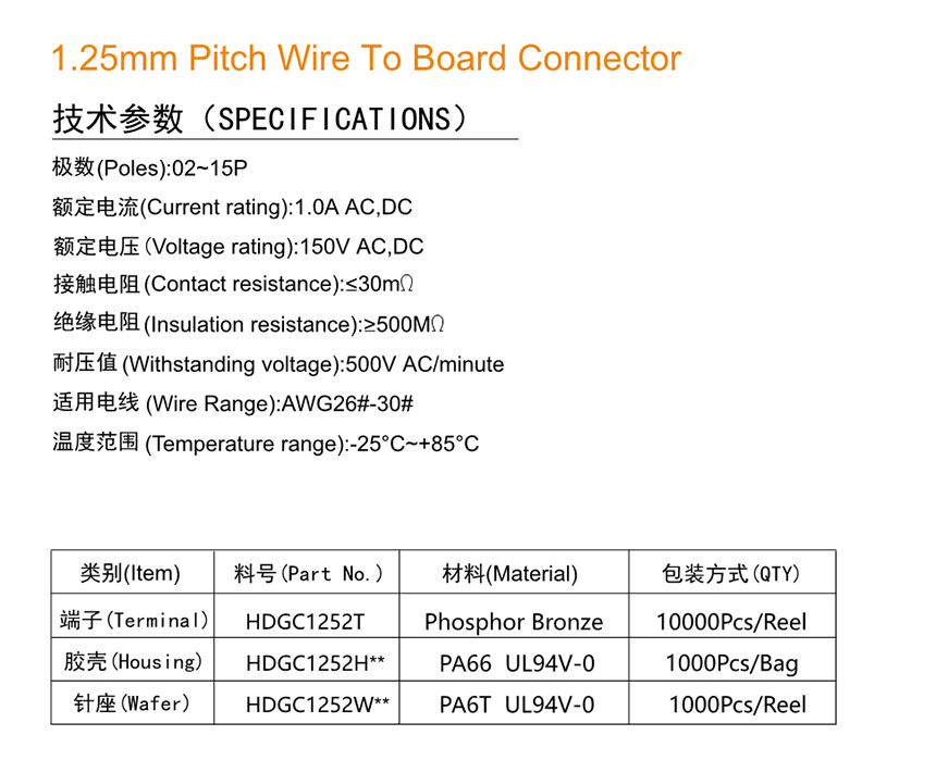HDGC1252 Series 1.25mm Pitch (.049'')線對板連接器