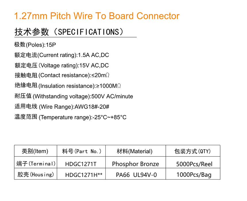HDGC1271 Series 1.27mm Pitch (.050'')線對板連接器