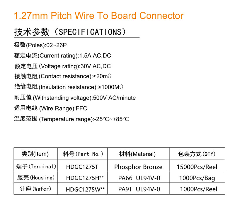 HDGC1275 Series 1.27mm Pitch (.050'')線(xiàn)對(duì)板連接器