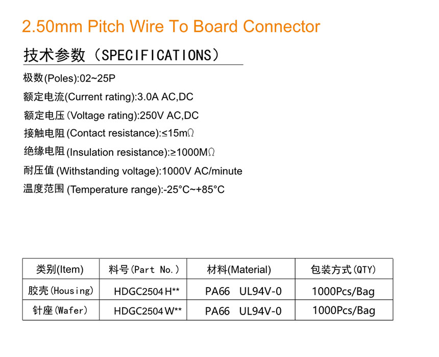HDGC2504 Series 2.50mm Pitch (.098'')線對(duì)板連接器