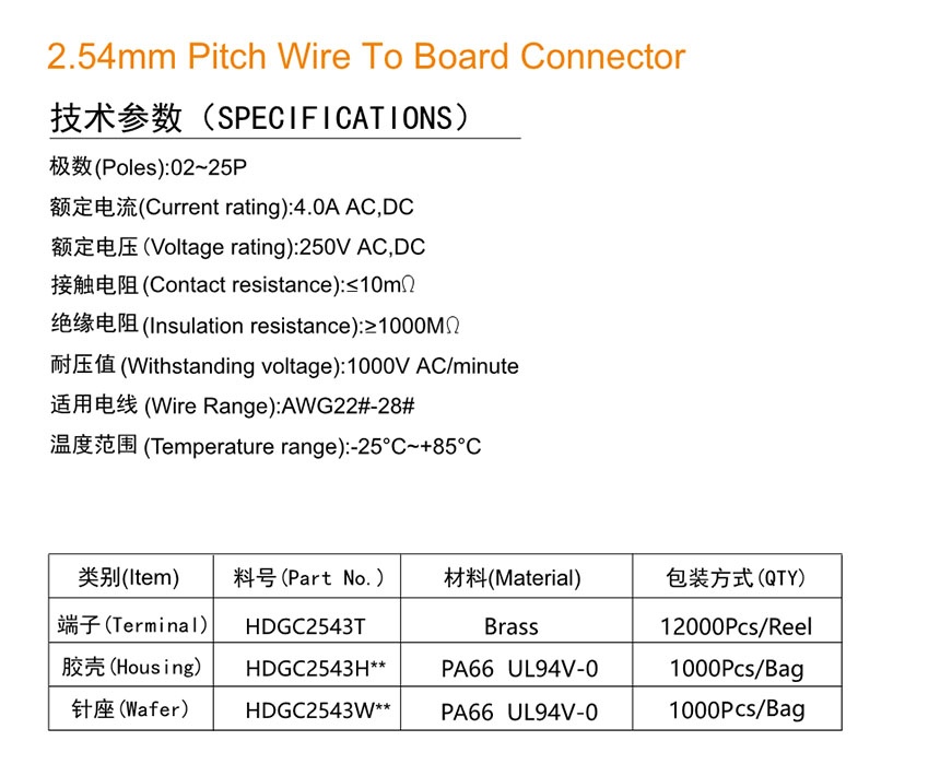 HDGC2543 Series 2.54mm Pitch (.100'')線對(duì)板連接器