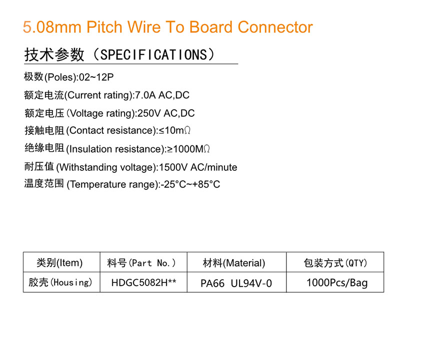 HDGC5082 Series 5.08mm Pitch (.200'')線對(duì)板連接器