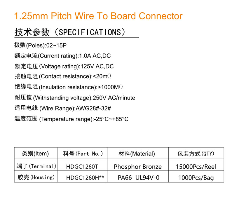 HDGC1260 Series 1.25mm Pitch (.049'')板對板連接器