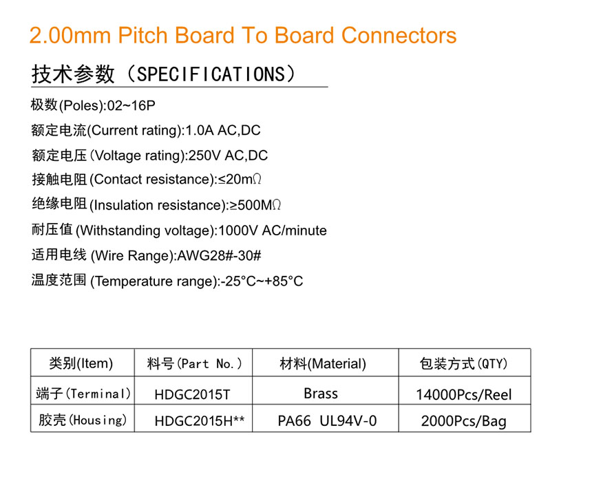 HDGC2015 Series 2.00mm Pitch (.079'')板對板連接器