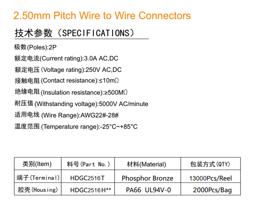 HDGC2516 Series 2.50mm Pitch (.098'')線對線連接器
