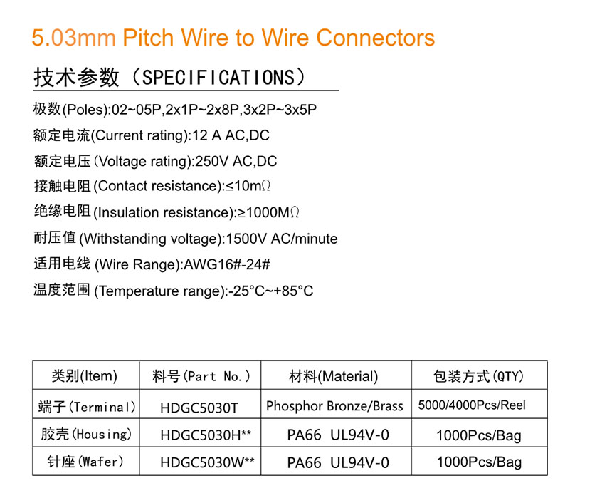 HDGC5030 Series 5.03mm Pitch (.198'')線對(duì)線連接器